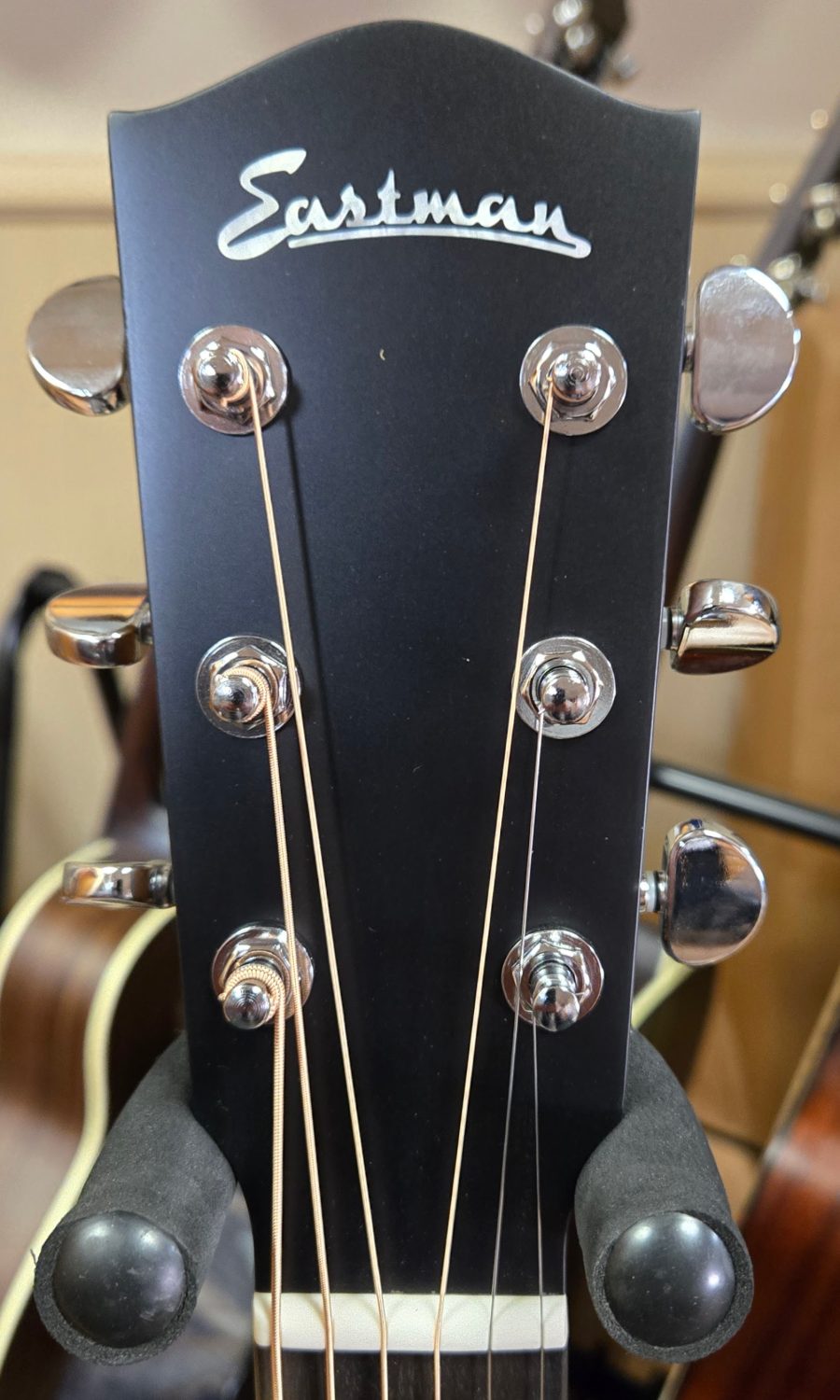 Notes: The AC222CE-DLX-GB sports all solid wood construction with solid wood Sitka spruce top, solid Ovangkol backs and sides, gloss goldburst finish, Fishman pickup and Eastman Deluxe carry bag