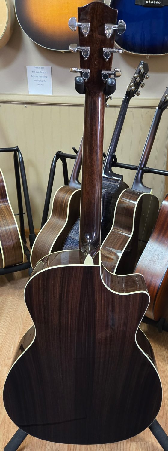 Solid Sitka Spruce top, rosewood back and sides with a cutaway and Baggs picup. A favorite of our customes