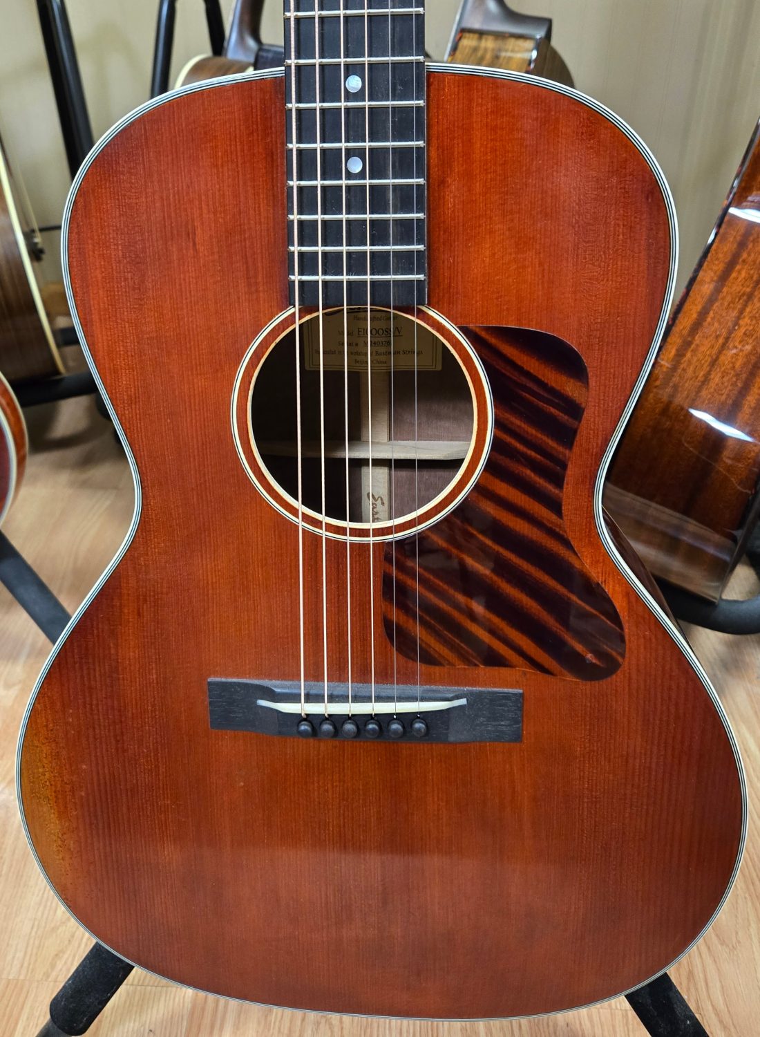 Notes: The E10OOSS/v has a wonderful resonant sound great for singer songwriters. The vintage varnish is rubbed in by hand layer by layer. TheE10OOSS/v features an Adirondack spruce top and mahogany back and sides. Comes with Eastman hard shell case