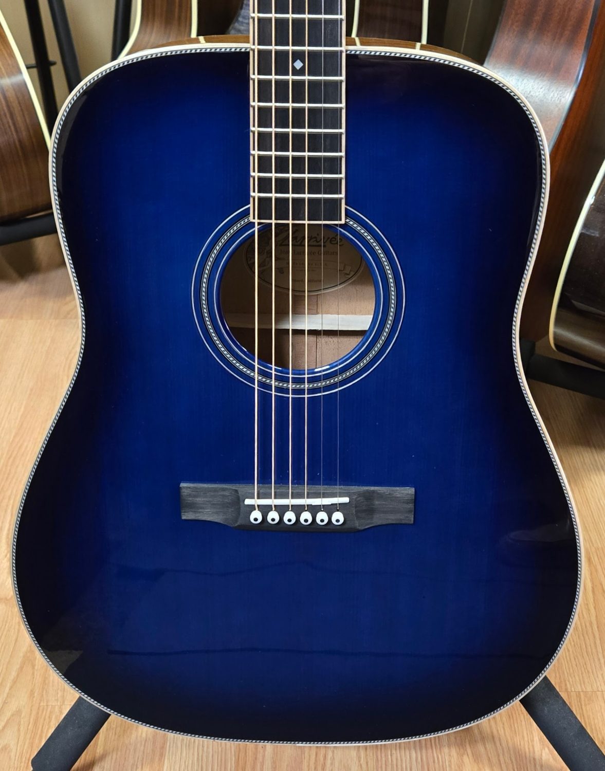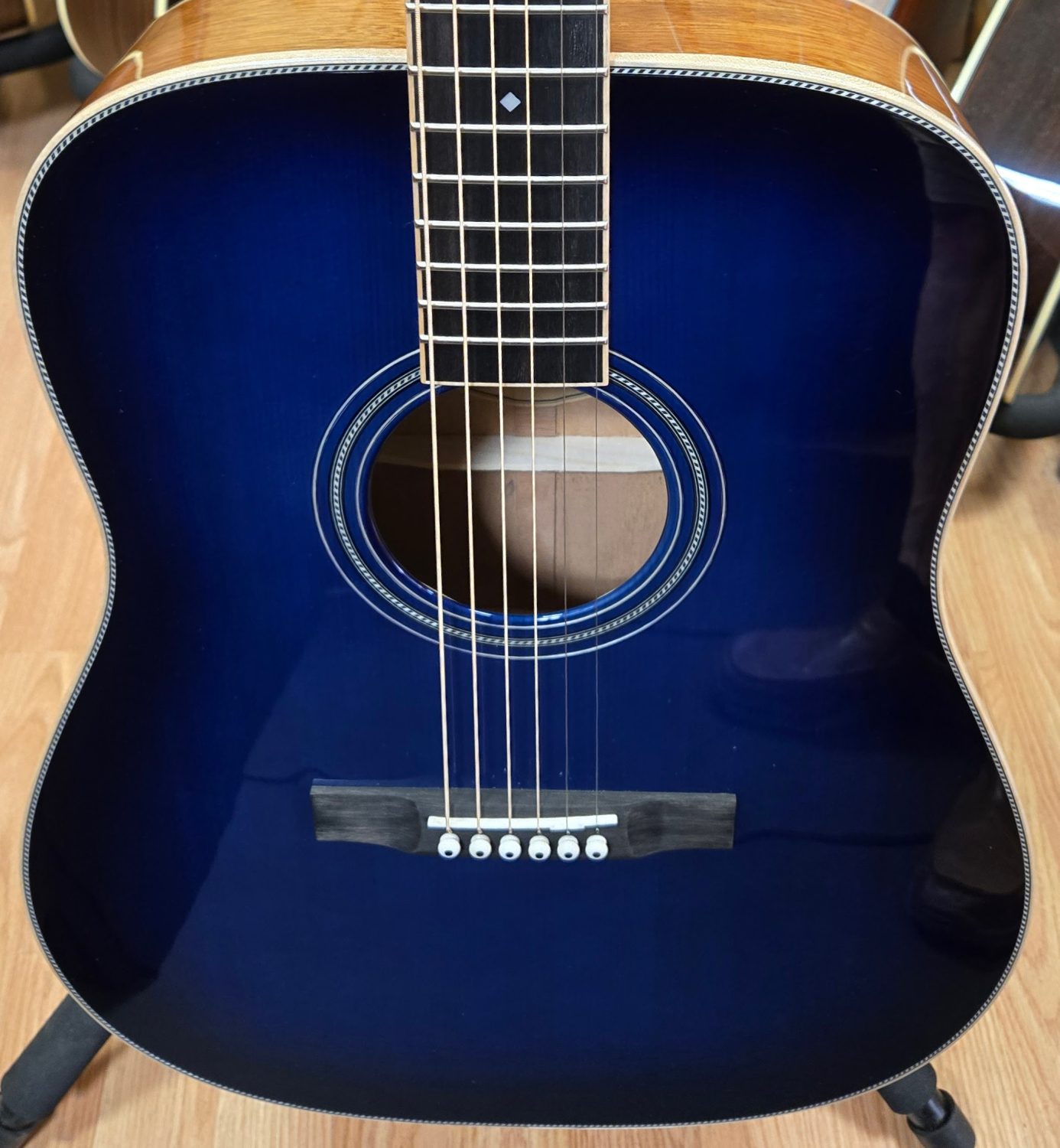 Notes: Step up to the Larrivee D-44 same as the classic D-40 but with a full gloss finish and custom Blue Burst top. Beautiful solid wood Spruce and rosewood dreadnought with Scalloped Parabolic bracing for a bump in the low end. Comes with hard shell case and a pickguard is included in the case