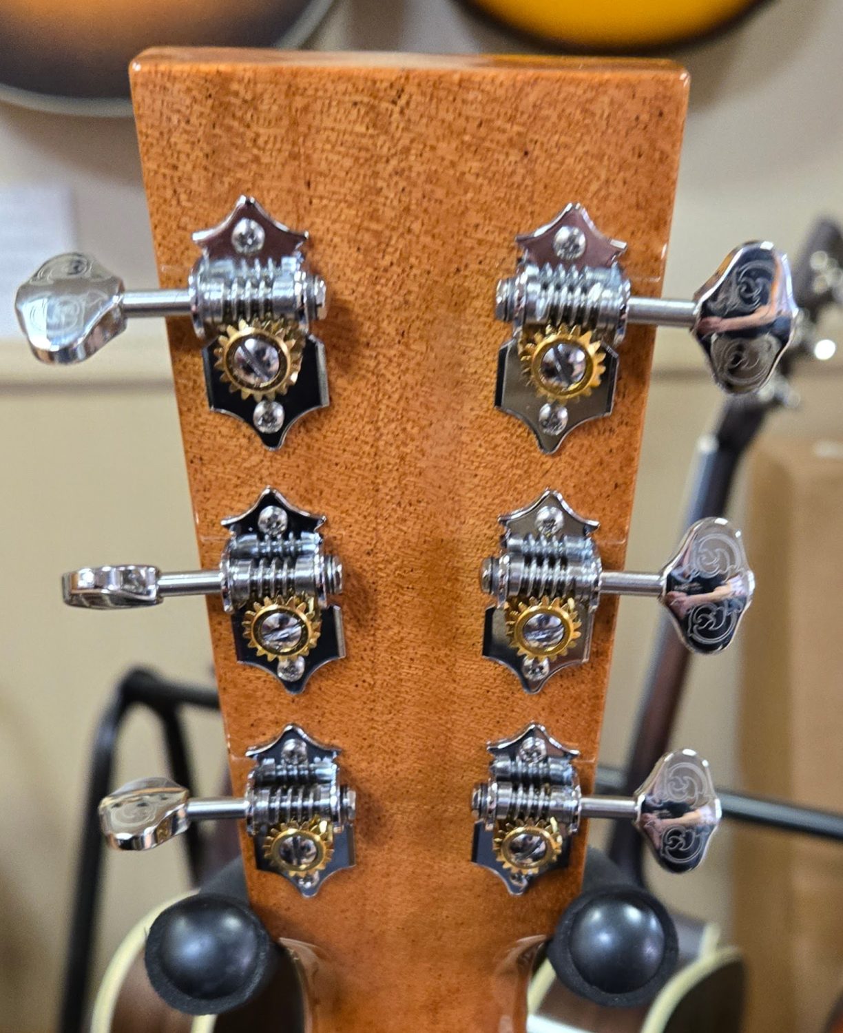 Step up to the Larrivee D-44 same as the classic D-40 but with a full gloss finish and custom Blue Burst top. Beautiful solid wood Spruce and rosewood dreadnought with Scalloped Parabolic bracing for a bump in the low end. Comes with hard shell case and a pickguard is included in the case