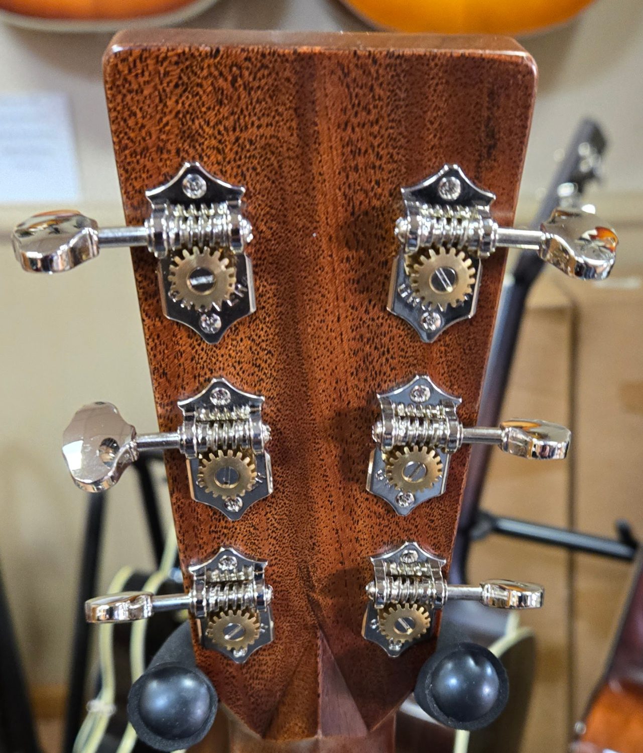 Used left handed 2023 Martin D-28 with a K&K pickup installed. there are a few small dents in the top. The picture shows an example of one of the dents. There are a few more but it's really hard to get of good picture of them. You can only see them when the guitar is at the right angle and you're looking close.